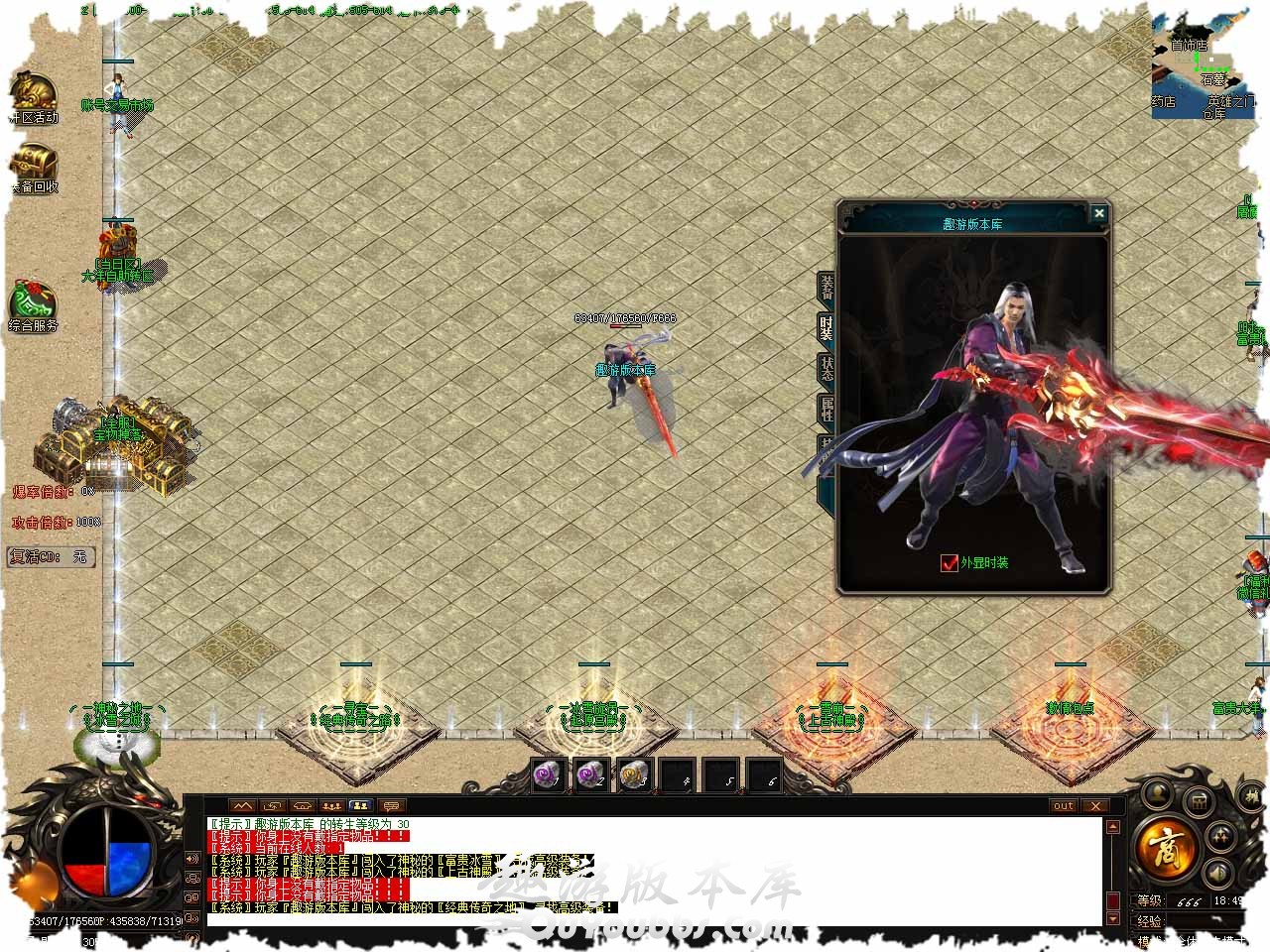 版本介绍:用心制作,长久开放经典耐玩!初级地图爆初级装备、锻造材料、转生材料等。 地图介绍:藏道殿地图,千重劫,百世难,亘古匆匆,弹指间。本图共7层,清完本层所有怪才可进入下一层!本地图怪物相当厉害,爆率相当高,3转以上组队2人以上队长点击才可进入! 副本介绍:副本地图只有非组队模式才能进入,进入此地图才能组队进入副本,从进入副本集结地开始计算,30分钟后所有任务传出副本地图,如果30分钟无法打掉所有怪物,副本失败,无法领取奖励! 版本介绍:锻造神魔-强身需要:洗髓丹20+血龙魄珠20+恶魔令牌20+20W元宝,只有50%的成功率,学习第一级成功率100%,成功:神魔之体增加1级 失败:神魔之体将为0级,每1级神魔之体可增加所有元素1%。 版本介绍:首冲66,HP永久提升1200+MP永久提升400+赠送洗髓丹*3+血龙魄珠*3,冲满88可获一转材料+洗髓丹* 2+血龙魄珠* 2+迷失特戒+1000W经验卷1个。 版本地址
