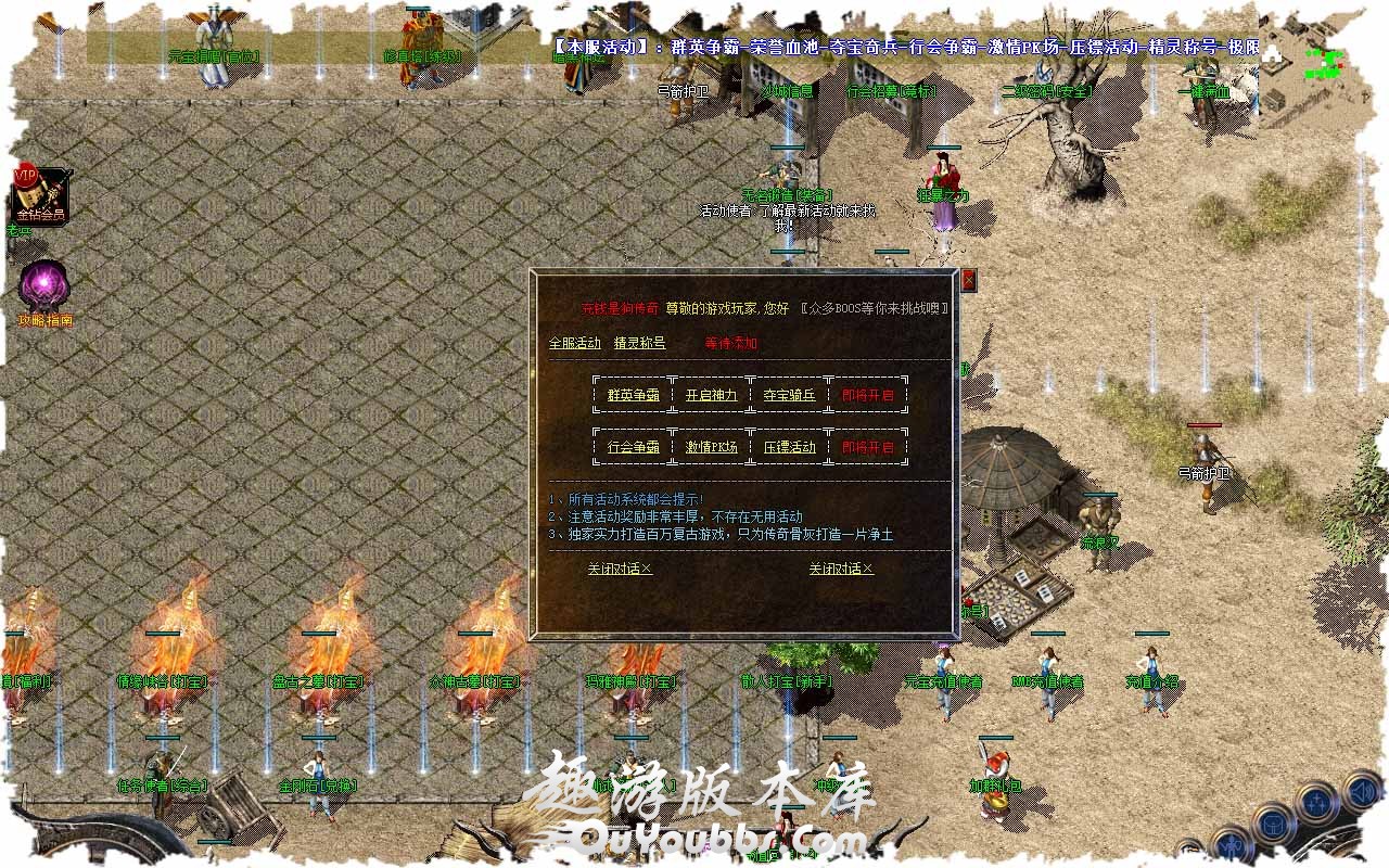 【版本介绍】黄金传奇用心诠释的经典只为你的出现 只为散人 不好玩直接关F。 【版本介绍】专为散人设计,无泡点地图,无首充地图,无会员地图,所有合成免费,无任何暗坑。 【版本介绍】上线随身泡点,免去升级烦恼!去掉一切药品,无顶药外挂和卡药现象。 【版本介绍】所有地图0等级进入,地图超多,怪物刷新快,元宝不能购买任何装备,没有无怪可打情况。 【版本介绍】小极品+10,+10免费点暴击,一套极品祖玛即可勇闯天涯,所有合成免费。 【版本介绍】1.76-1.80之间,装备多却没有华而不实,简洁清爽,运9运10带隐藏属性。 【版本介绍】打金PK首选,终极及书页全部暴,稀缺特戒书页级终极价值高,装备全靠打。 【版本介绍】全新独家,60级封顶,新区三天拿沙,老区2.4.6拿沙,奖励50000元宝。 版本地址
