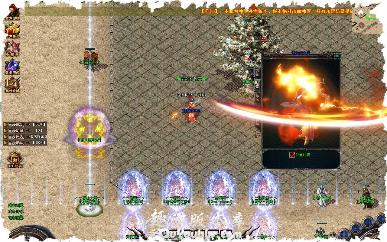 【版本介绍】:本服为新冰雪版本,版本市面少有,头盔进阶,需要装备一件加40万元宝或者40灵符可进阶。 【版本介绍】:本服封外挂,封挂效果绝对给力!一旦遇到开挂者直接封,请玩家珍惜自己游戏中劳动果实,诚信游戏。 【版本介绍】:本服专业传奇团队,版本长期更新,如果有好的意见和建议,或发现BUG等可以去留言平台反映! 【版本介绍】:本服长期开放,BOSS可以爆出本服所有装备,这不是一天闪服,装备等级需玩家努力。 【版本介绍】:为提高人物属性方便玩家打宝,特设置各种NPC,龙的传人,转生服务,爵位捐献,天下第一,等等。 【版本介绍】:本服所有装备都可以爆出,付出时间终极装备不再是梦想,打到其他职业的装备可以进入市场摆摊出。人物下线摆摊也不会消失。 【版本介绍】:本版本新增武器附魔系统,成品武器需要装备一件加300万元宝或者300灵符,上古武器需要装备一件加800万元宝或者800灵符。 【版本说明】:版本新增淬炼系统,5转装备需要装备一个加30万元宝或者30灵符,6转装备需要装备一个加150万元宝或者150灵符,7转装备需要装备一个 加300万元宝或者300灵符。 【版本说明】:火祭装备玩法说明,天·系列、盾MAX系统、点点神力MAX可进行火祭,可祭装备对应的起源系列、终极治疗宝珠等,武器衣服不能火祭!!首饰才可以,火祭后祭品消失.装备保留,攻魔道随机出1-30点内,此30点与套装属性是相乘的算法,要比实际属性点飙升数倍!极其强悍,所以10攻击很可能最终是50攻击!算法如下:,原始攻击力*所有套装属性的和*火祭后的属性点,攻魔道点数随机加.有几率出极品。 版本地址