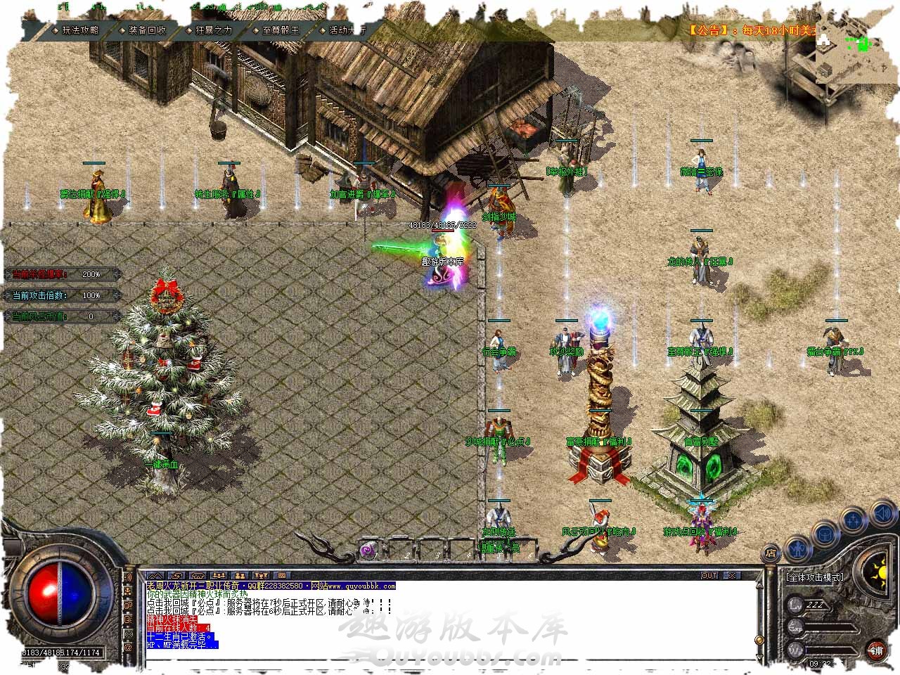 1、本服为独家1.80复古版本,只有一种货币风云币,比例1:10。 2、本服1天三个区,当天合区拿沙,天天体验拿沙,拿沙要求:盛世剑甲套+时装+龙腾盾牌+(后面部分元宝合成)龙腾斗笠+勋章+宝石+兵符。 3、捐献1888风云币,打元宝和终极装备的好去处。 4、龙传活动,全区狂暴被卸载50次,必爆老周首饰,不关爆率,其他更多玩法请在游戏中体验。、 5、装备升级系统,把要提升的装备带在装备栏内,攻魔道防魔3风云币提升1点,准确5风云币提升1点,首饰系列最高提升3点,武器衣服最高提升7点,升级成功率100%。 6、神魔附体系统,来自玛法大陆的勇士,不知您可曾听说过神魔附体,相传属于上古魔族为了对抗神族而研制的魔功秘法,如果你交一定的风云币。在相关NPC处可以帮你开启神魔附体,开启后攻魔道增加50点,增加1.1倍攻击,基础血量增加100点! 版本地址