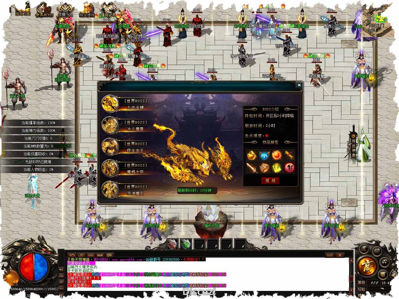 版本介绍:每日捐献可获得丰厚奖励,1.3倍攻击,刀刀切割30万HP,自动捡物,打怪爆率增加50%,捐献数据每天凌晨24点清理。 地图介绍:鸿蒙古地地图是后期玩家刷装备地图,掉落任何特殊装备,建议玩家刷装备直接回收元宝,元宝兑换钻石在江湖奸商购买等级丹.,越高等级地图,怪物爆的越好,有等级有一切.,装备越好打怪越快,此大陆地图均为发展打装备地图,每个地图对应有25只暴率BOSS,BOSS的暴率是小怪的N倍暴率,具体能爆到什么就看运气了,这个地图还有机率掉落永久回收神器。 新手介绍:散人玩家前期必打新手地图,这个地图品质装备好刷怪,而且新手容易玩,有了刀刀切割以后刷怪快,然后好快速刷元宝,好升级切割星盘,前期地图无大怪..只爆1-12阶段基础装备..刷装备回收元宝地图... 版本介绍:天帝之魂打怪可爆..BOSS可爆天帝之魂包..天帝真龙宝箱也可开出天帝之魂包... 等级突破:玩家升到一定的等级之后还可以突破,升级方式1:帝级等级丹*1,可升级到200级,满回馈赠送200级。帝级等级丹狂暴之神必爆,玩家升级之后可进入更高地图打更好的BOSS,爆更好的装备,建议打元宝换钻石买满回馈直接送到200级... 版本地址