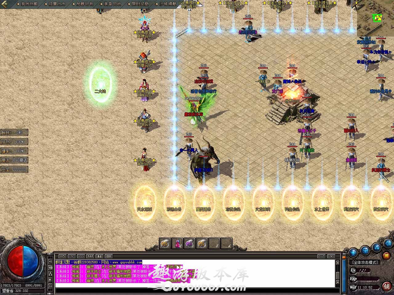 版本介绍:散人玩家上线领取赞助+qq礼包然后开始打怪,所有货币打怪均可爆出!特殊主要靠材料,慢慢攒材料提升,只要花时间,照样厉害。 版本说明:新手上线先领取【QQ群礼包】获得随身泡点以及开荒装备道具,本服推出了三种副本,骨灰玩家每天可免费领取三种副本令牌各一枚。建议先领取令牌,等待自身强大后再进入会更有效率!(副本在土城左下角)。 版本介绍:升级当然少不了经验倍数的加成哦!玩家可以先在土城上方合成勋章【吉娃娃】勋章自带双倍经验可以叠加聚灵珠使用升级速度更快! 版本介绍:本服新服开区活动较多,活动BOSS击打较为简单,可以爆出大量材料、大量充值、以及大量装备,最重要的当然就是【神宠精元】咯,必爆哦!活动可别错过了! 版本介绍:土豪玩家直接冲188,把礼包全领了,狂暴开启,沙城捐献必须要开,本服不设置顶榜玩法,前五名玩家都可以享受超高福利待遇,爆率、倍攻、专属地图、随身泡点30000经验等等!冲188可领取回馈,可获得【至尊王者】称号,进图半价,通天塔、终极地图等随便进!》 版本地址