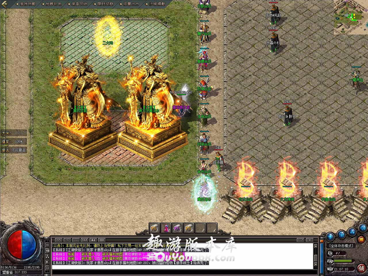 【补丁大小】:2.01GB,PAK补丁全部一次加密,测试客户端:17周年纯净端。版本带有假人系统,清档之后假人自动上线,此传奇服务端使用了ESP插件,开启了大背包功能。