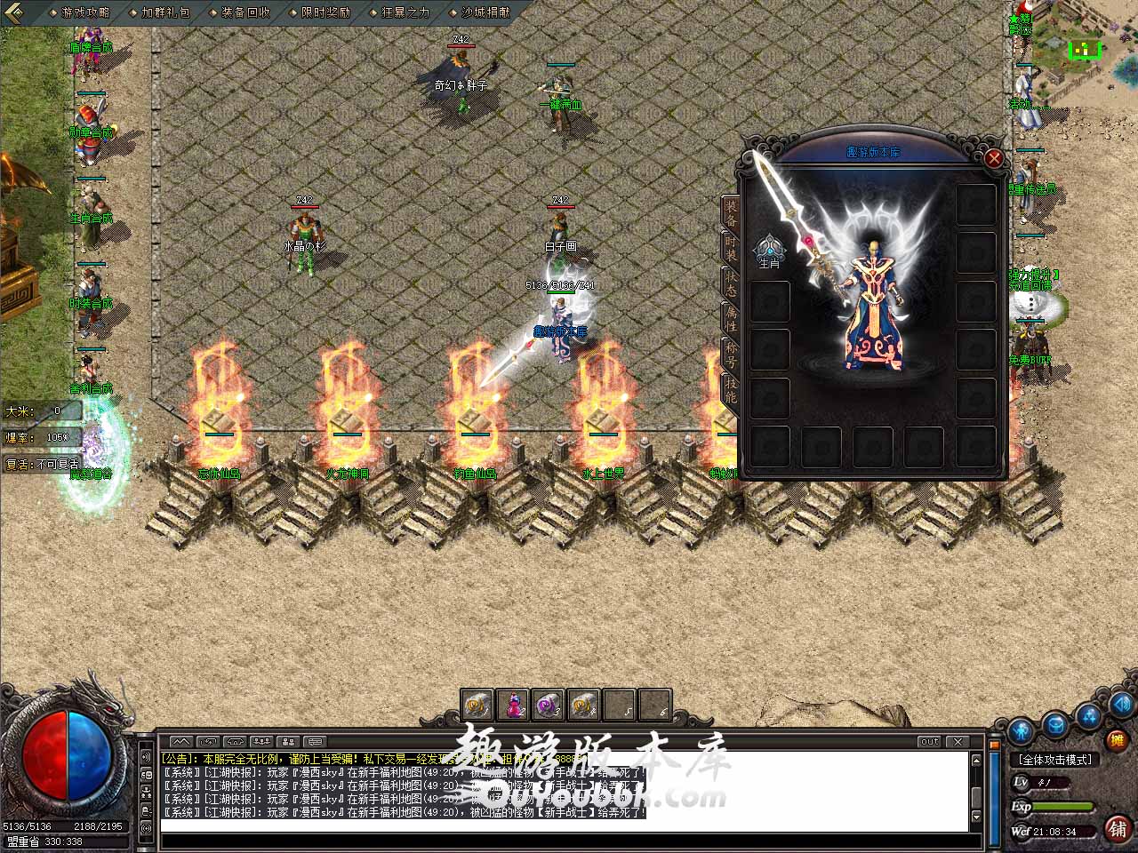 【版本介绍】:单职业复古微变,出刀流畅,攻速得到极大提升,大背包,全屏捡物,自动回收。 【版本介绍】:没有浪费时间的大地图,没有无聊的套娃地图,一切回归简单纯粹的初心。 【版本介绍】:装备千百件,等级,倍攻,BUFF,专属,应有尽有,拾取鉴定,任意搭配。 【经典玩法】:战士开荒 武兽宝宝辅助作战 上千种装备,几百种BOSS。 【地图说明】:本服无消费地图,本服地图超多,散人全部可以进! 【版本介绍】:本服设置特色:结婚系统 捐酒系统 坐骑系统 时装系统 【版本介绍】:本服装备特色:装备高达上千种,请仔细探索,自行组合! 【版本介绍】:本服地图无任何限制,增值玩家和0冲玩家都是进一样的地图,还原传奇原来的味道。 版本地址