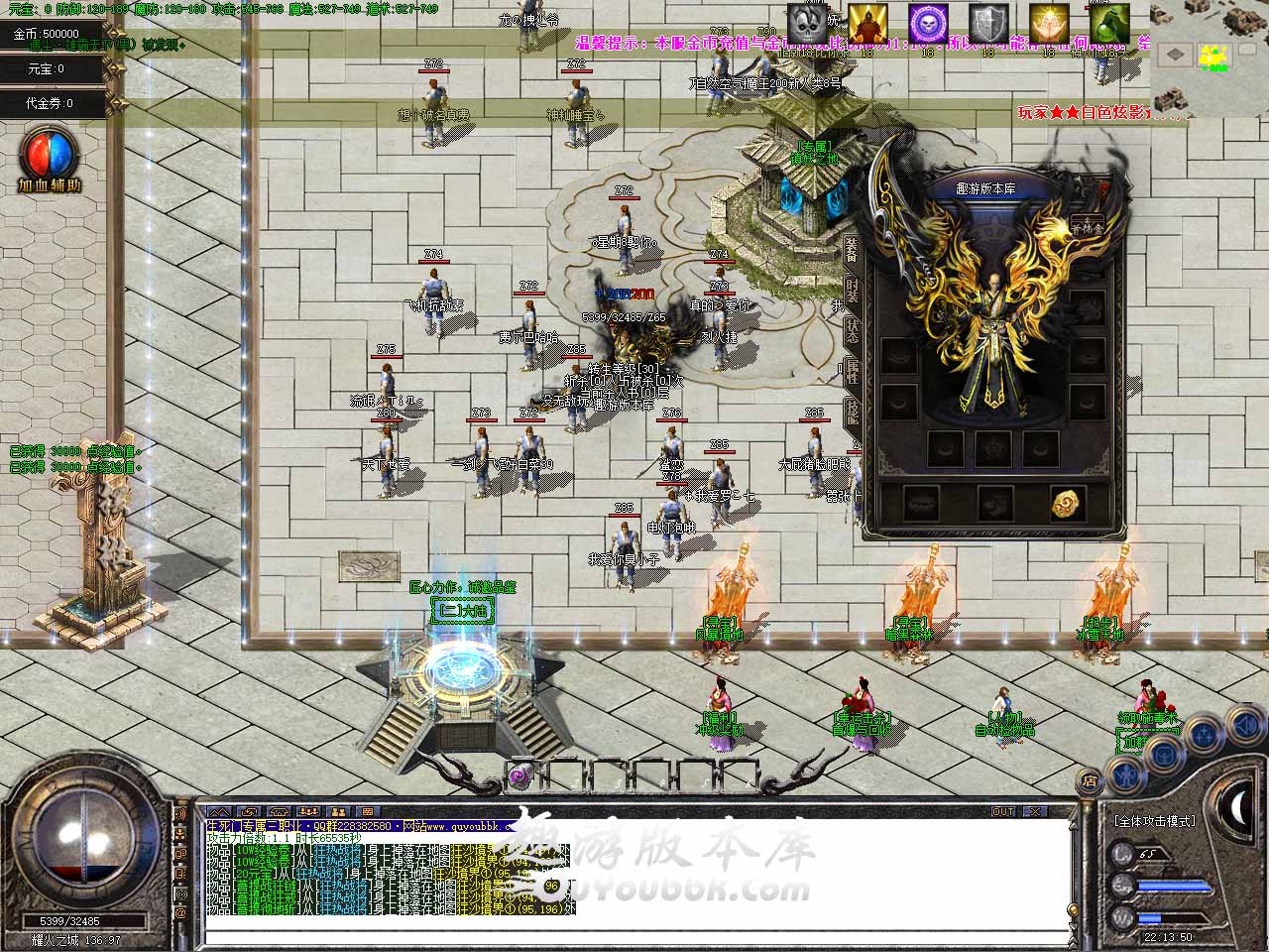 版本介绍:开放宝石融合系统,此炉乃是上仙“太上老君”遗落在人间的上古神炉,能吸取天地精华,你若能好好了解此炉的使用方法、便有可能获得遗失已久的宝石精炼大法,请放入待镶嵌的宝石进行开孔,宝石镶嵌免费,同一件装备仅允许镶嵌两颗相同类型宝石,开1孔5000元宝,2孔10000元宝,3孔30000元宝,提示:开孔镶嵌仅支持,武器、衣服、头盔、项链、手镯、戒指、靴子、腰带。 等级提升:在游戏中可直接提升等级,少侠,竟然能坚持到如此地步,不愧是砝码大陆的精英!!不过,想成为数一数二的强者,你还得付出更多的努力!提升等级129级需要:100金币+20亿经验卷* 5,130级需要:200金币+20亿经验卷* 5。 狂暴说明:【狂暴】状态下,可以配合至尊VIP打怪爆率+50%,可以配合至尊VIP元宝回收+20%,人物攻魔道 + 66点+1.2倍攻击,同时HP + 10000,MP + 5000 +100切割。 幸运升级:满幸运15点触发刀刀最大攻击,升级幸运+1需要 5000元宝,成功率100%;升级幸运+2需要10000元宝,成功率100%;升级幸运+3需要30000元宝,成功率100%,准确:提高攻击命中率,提高攻击效率最高30点,50%几率,一级加一点! 版本地址