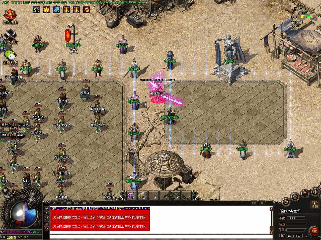 版本介绍:新区第2天下午18点台区,集体拿沙,老区天天拿沙,新区奖2008元宝500+10游戏点点+100个专属点直接领取,攻城后22 0-2 20之间,超边时间无法领取。 版本介绍:天赋系统是为玩家提供全面提升属性的渠道天赋神石通过打怪获得,天味神命石[ 0/500]次每提升1级永久增加血重5000点攻击20点,天味逆天石[ 0/30 ]次每提升1级永久增加物理减伤1点。 版本介绍:冲300以上,可以永久获得全属性+1888 HP+300W和MP+50%+3倍爆率,玩家可以通过充值领取后小退上线双击NPC,系统将自动检测。获得以后可以享受[超高] 属性,[终极系列爆率 爆率最高的地图]。 版本介绍:好汉称号只需冲30即可获得属性,经验每秒+100万,刀刀切割怪物2万,打怪爆率永久提升500%,人物攻击永久提升0.5倍。 版本地址