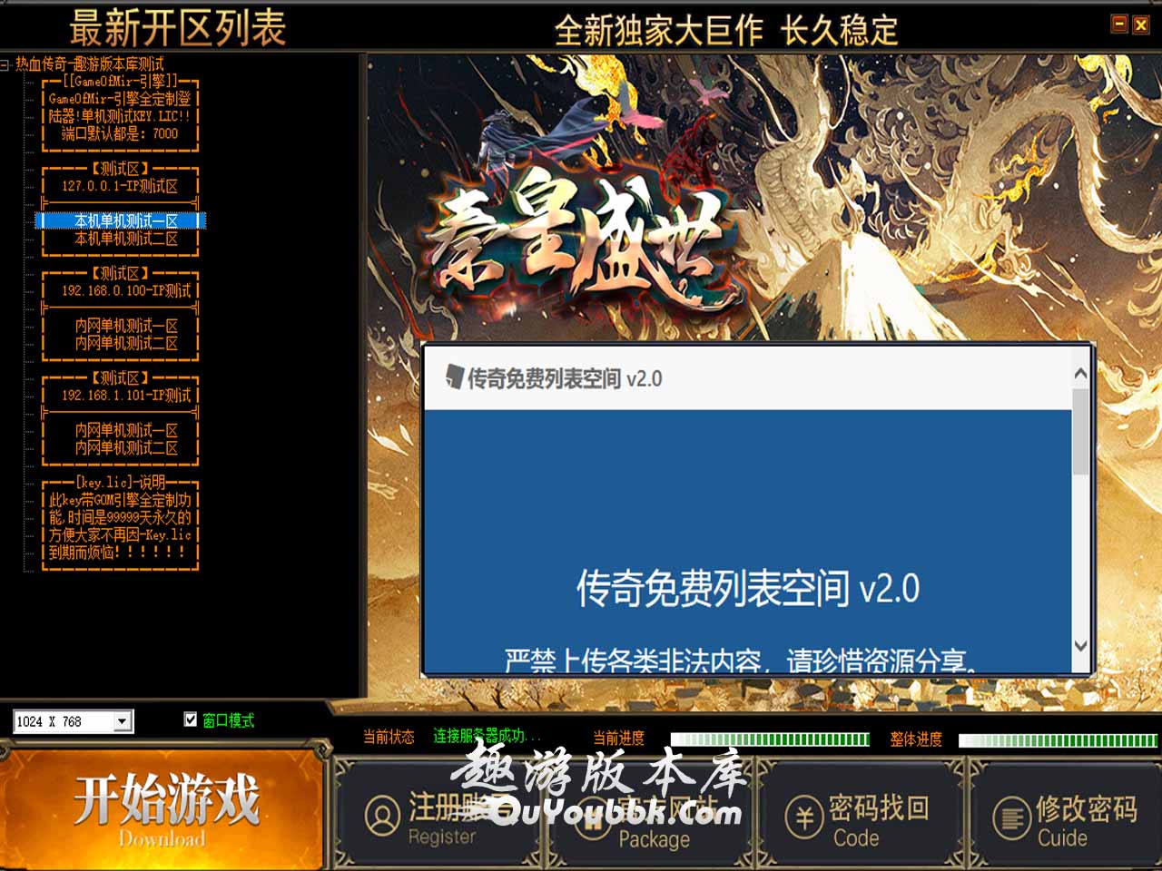版本介绍:本服专业传奇团队,版本长期更新,所有装备都可以爆出,付出时间终极装备不再是梦想!