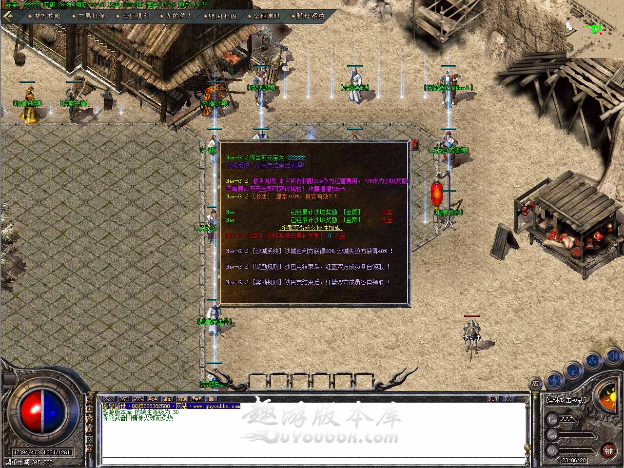 补丁大小:815.10MB,PAK补丁全部一次加密,测试客户端:17周年纯净端。此传奇服务端使用了ESP插件,开启了大背包功能。 版本介绍:回馈广大玩家,本服特推出测试区打到的元宝正式区返还系统,测试奖励制只计算回收所得元宝,正式开区后可领取50%。 版本介绍:押镖时间为每天的21点至23点,每人每天限3次,随机分配普通,高级,超级镖车,奖励不一样,押镖中途下线视为失败,押金将归劫镖所有,押镖完成后退还押金,并给予1000-3000万经验奖励,请把镖车运到: 押镖之路㈡的镖局总管处换取酬劳。 版本介绍:每天19:10是武林争霸举办时间,大于40级的玩家才可以进入争霸地图,活动开启后10分钟内可重复进入地图,10分钟后大门关闭.,当场地PK到仅剩最后一玩家则诞生霸主。 版本说明:等级达到60级即可开启幸运爆率地图,随机出火龙剑甲,等级达到:65级即可开启幸运爆率地图,随机出秦皇特殊,等级达到:70级,即可开启幸运爆率地图,随机出盛世剑甲,全区第一个升级太乙真人的玩家会给予一个开启幸运爆率地图的机会,有几率触发: 秦皇剑甲爆率,限一合之前!合区之后关闭。 版本地址