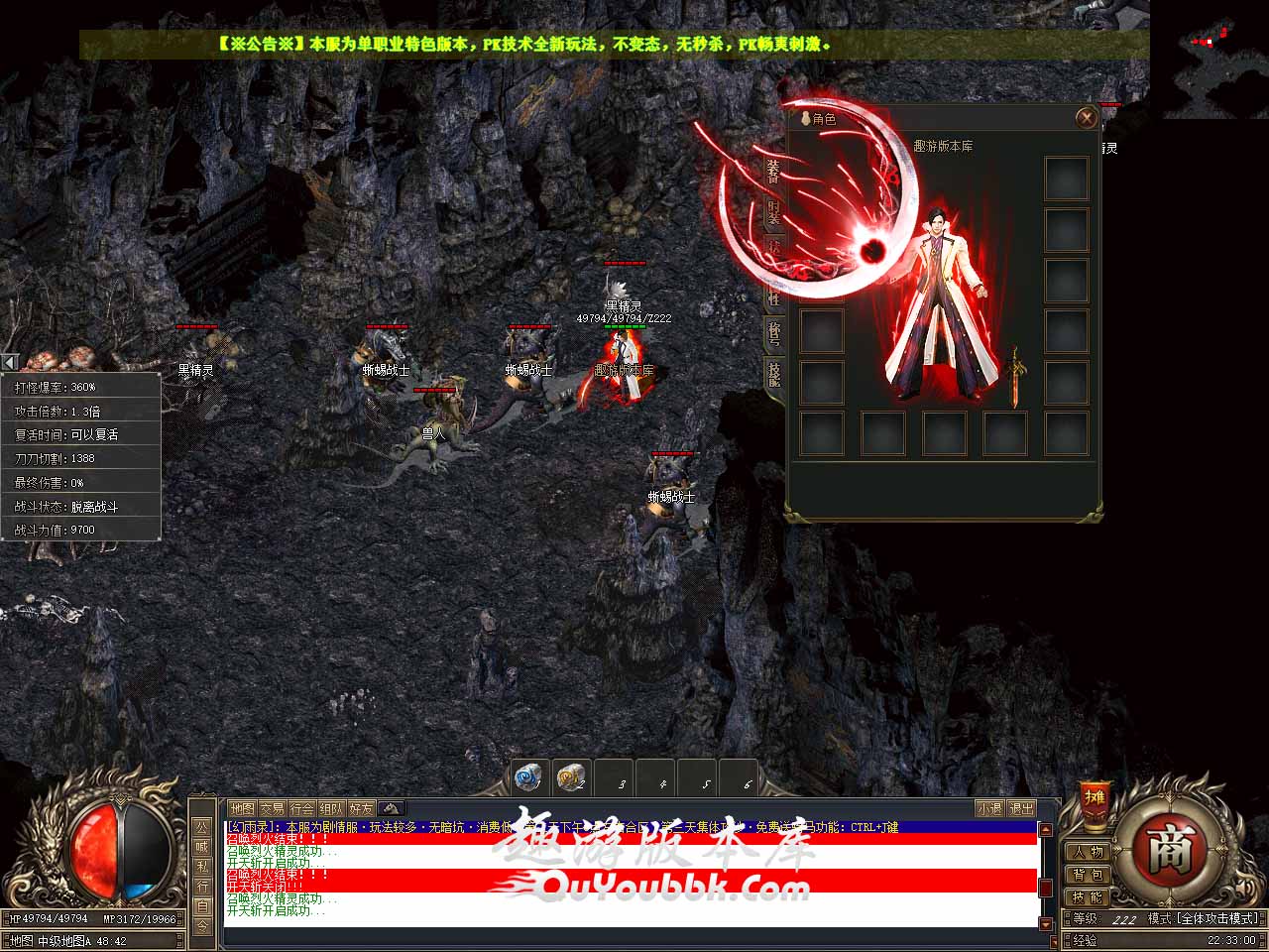版本介绍:历时半年打造,2023年最具特色单职业版本,全部装备靠打,真正散人服。