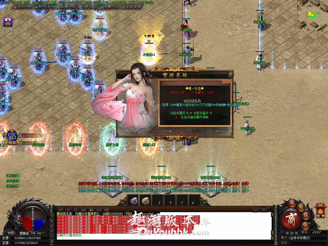 补丁大小:3.26GB,PAK补丁全部一次加密,测试客户端:17周年纯净端。游戏兑换码:666888,版本带有假人系统,清档之后假人自动上线,此传奇版本使用了无限蜂插件,开启了大背包等功能。