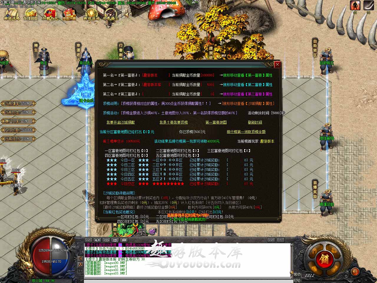 版本介绍:开放摆摊功能,摆摊可以选择2种货币,一种元宝,一种金币,元宝不做其他介绍,金币可以用于游戏里面交易,30W元宝可换1颗游戏点币。 版本介绍:结义需要『300金币』,结义时2人面对面站好。结义后2个人均可获得1.2倍攻击 爆率1.1倍 刀刀切割+10万,传唤命令:@允许传唤兄弟 @传唤兄弟,注意结义后如需断义也要100金币。 版本介绍:新增转区功能,请大家当天转区当天领取,每天00.01点系统自动清空转区数据,提示:测试区不可以进行任何操作,数据不保留,转区赠送金额=1:10W元宝[不含平台多送],提示:转区需要充值赞助点满100。 版本介绍:新增铭文玩法,1.铭文镶嵌不会随着装备掉落而消失,重新佩戴装备就会有当前的铭文级别,2.捡到别人的高级铭文的装备,再次佩戴,会根据你自身的铭文等级而自动改变,3.铭文所需要的铭文值全部来自于回收装备。 版本介绍:魔化魔法盾需要1500金币加1000个技能神石成功几率100%,该功能可抵挡近身伤害包括怪物魔化魔法盾20%。 版本地址