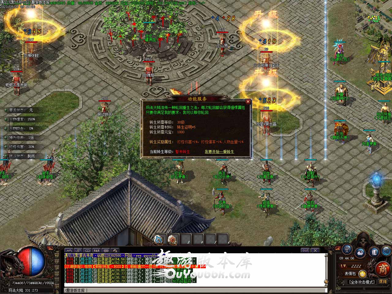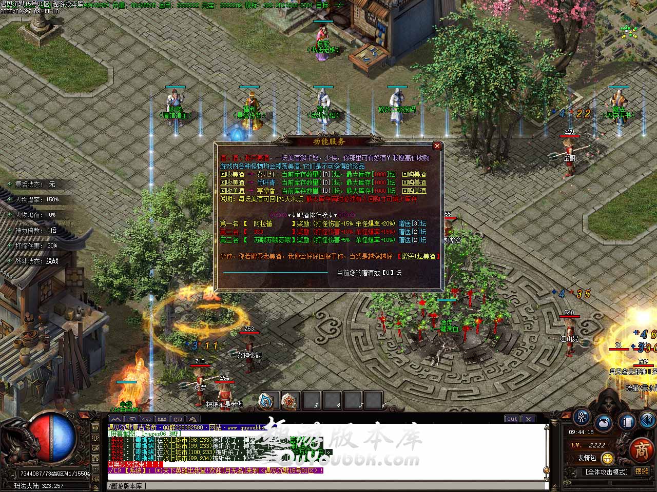 补丁大小:10.31GB,PAK补丁全部一次加密,测试客户端:17周年纯净端。版本带有假人系统,清档之后假人自动上线,此传奇版本使用了ESP插件,开启了大背包功能。游戏兑换码:666666
