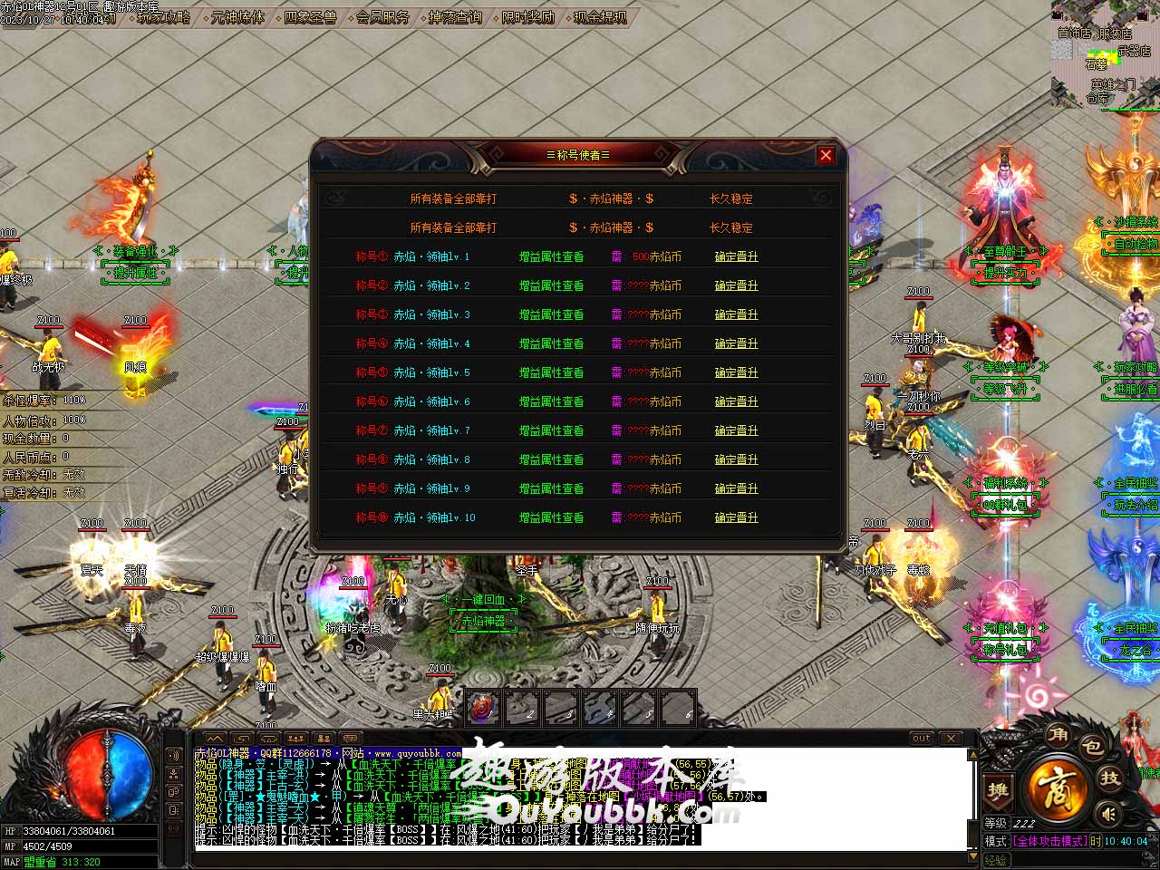 版本介绍:散人玩家上线第一步先到土城领取QQ礼包,然后吃魔莲-魔帅-这个在人家那里起步地50-我免费赠送,领取完后就直接赠送到9转,可以下土城的任何地图,地图先找小怪打套起步装备。 版本介绍:打积分到土城坐标548:607处找NPC提升等级,等级到达80级可以直接前往二大地图,这个时候你已经无须攻略了,土城任你走,二大地图任你行,嗷嗷打怪就行,本服承诺只要你有时间玩一样可以逆袭。 版本介绍:本服等级全部靠打材料提升,无游戏点直接提升,做此NPC鼓励玩家,收材料带动散人。 版本介绍:先放升级奖励功能,先升级先起飞,每个新区前3名升到305级奖励,第一名升305级奖励:18.0首饰随机一件,第二名升305级奖励:15.0首饰随机一件,第三名升305级奖励:12.0首饰随机一件,注意:第一个到305级的就领取第一名领取,瞎领取的后果自负,此功能24小时后关闭此奖励。 版本说明:装备靠打的服,人人都想爆装备,我能理解,但是大家都爆了那还有意思?有些玩家上线三小时打不到装备就去嗷嗷骂管理,没爆率,没爆率。还有玩家总认为有些人有隐藏爆率,我只想说微信抢红包有的时候还抢几分钱。爆率只是一个数字控制,本工作室运营私服行业8年之久,尚未发现有让你们每个人都满意的方式。别的服怎么运营我管不着,但是本服可以很负责的告诉你,玩家一视同仁公平公正。游戏里遇到任何问题都可以QQ群联系我们的客服人员,帮您完美解答。 版本地址