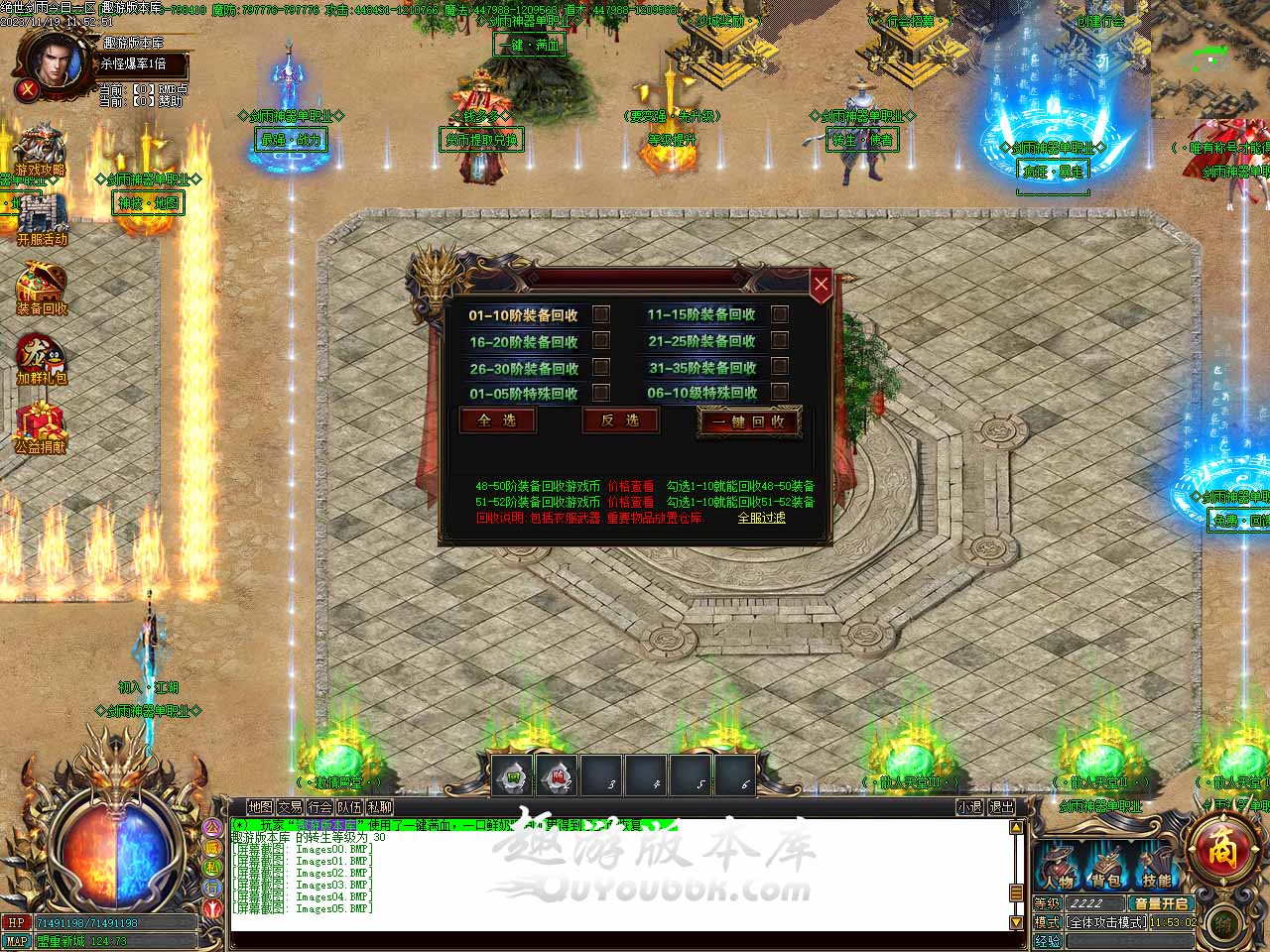 版本介绍:元宝比例1:3000,在线冲赠送100%,点卡赠送80%,多充多送,测试冲赠送20%。 版本介绍:新区开放第二天合区,第二天统一拿沙奖励1000W元宝+全服进图40%元宝+红包奖励。 版本介绍:本服地图多,BOSS多,怪物刷新快,特色独家玩法在等你挑战。 版本介绍:本服每天五个新区,每日广告海量宣传,保证区区人气火爆。 版本介绍:哪怕新手地图,也有一定几率暴出好的装备或者材料,拼人品的时候到了。 版本介绍:本服使用定制版云端封挂登陆器,封一切加速,脱机外挂,还原绿色游戏。 版本介绍:电信+网通,千兆双线、采用多机负载技术、外加盾机防护、真正电信和网通都不卡! 版本介绍:本服禁止建立空白人物空白账号,合区自动删除空白人物空白账号,本服所有BOSS每打一次都会爆出大量元宝和积分,有利于散人发展! 版本介绍:人物等级上线泡点保送500级,600级-800级靠打怪,参加活动和吃等级丹来升级,500级以后靠吃等级丹,各大地图爆率超级高。 版本介绍:本F所有装备均可在游戏中获得,越高级的装备暴率越低,但是绝对能暴,短期不能打到只是运气问题。 版本介绍:后期请下载本服完整补丁才能正常显示高级地图,装备,和怪物,和神器技器画面! 版本介绍:进入游戏发现NPC看不见,NPC对话框显示错乱,装备栏显示错误的请重先打开登陆器让小补丁自己更新完成即可!如果无法自动更新!请下载完整补丁安装后再进入游戏即可! 版本地址