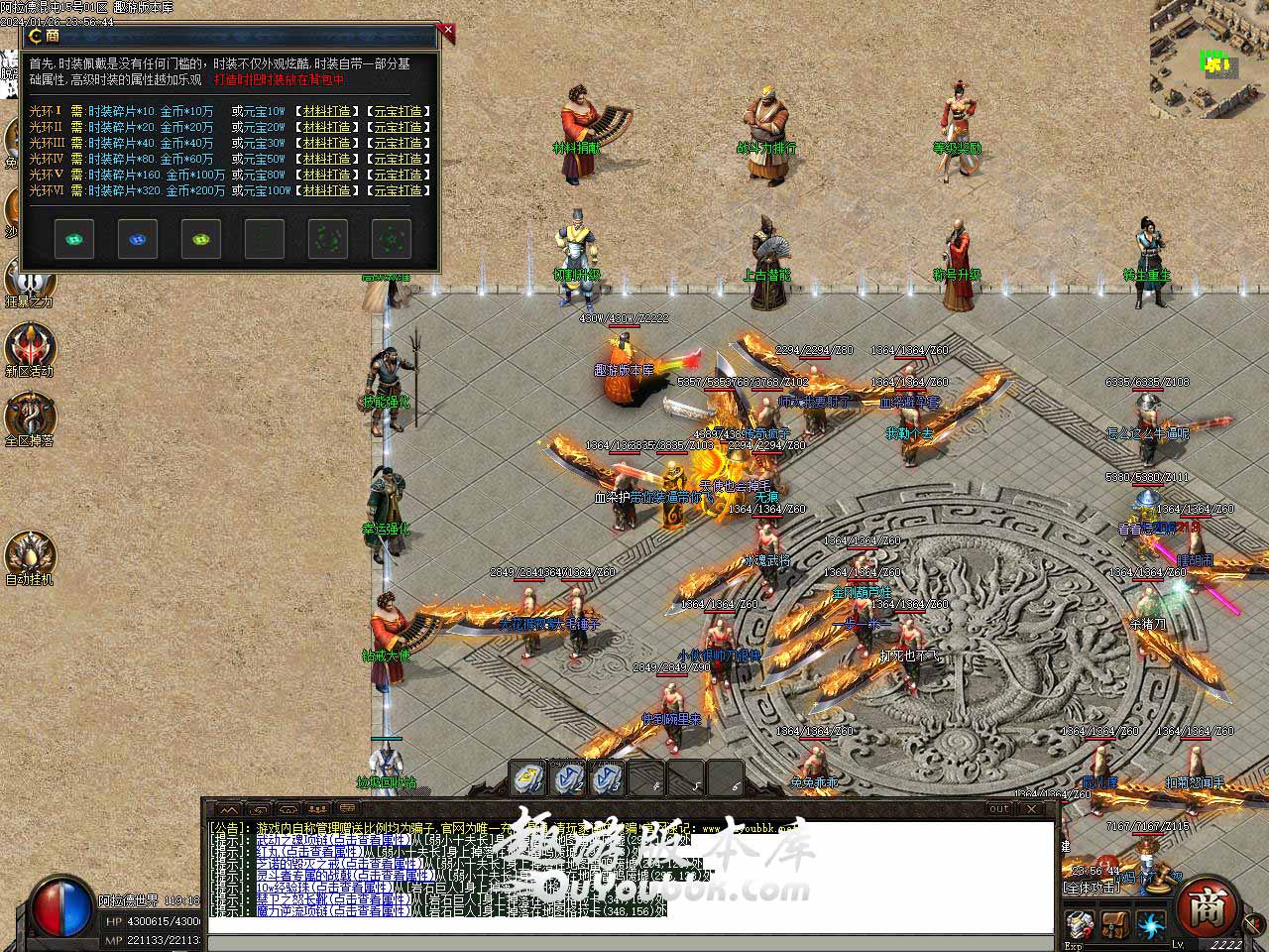 版本介绍:为回馈广大玩家,本服特推出测试区打到的元宝正式区返还系统,可返还元宝包含(回收、拾取等各种从游戏中获得的元宝,返还比列为测试区打到限时元宝总数的50%,举例:测试区总共获得5000元宝,正式区可直接领取2500元宝。 版本介绍:新增各种活动,1.天降财宝活动,主城药店会掉落满屏宝物,玩家随意拾取,有缘得之,开放时间:新区开放后30分钟一次(只开放一次)。2.飞机夺宝活动,夺宝地图内散落各种宝物,玩家只能使用随机捡取,开放时间,新区开放后60分钟一次(只开放一次)。3.世界BOSS活动,沙城复活点会出现“世界BOSS”击杀掉落满屏宝物,开放时间,每日0:30、6:30、12:30、18:30。 版本介绍:装备强化,本服的武器衣服可以进行强化,武器强化攻击力,衣服强化生命力,每强化高一星,可多增强人物1%属性,最高可强化至20星增强人物210%属性,请把强化的装备放入右边框中,每次强化都需要消耗一些矛盾的结晶体与金币或者元宝,根据强化的等级高低,强化的成功率与需要的条件也会变动。 版本介绍:攻沙期间请开启“装备、武器、特效、翅膀简装”避免游戏卡顿。 版本地址