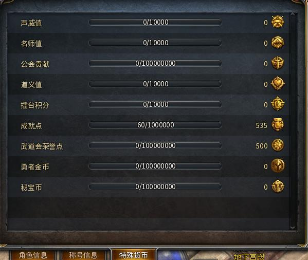 ● 秘宝币:秘宝宝箱中可以获得,宝箱品质越高含有秘宝币越多。属非道具类,可在“NPC宝珍多(盟重412,558)——秘宝币商店和角色装备——特殊货币”中查看。