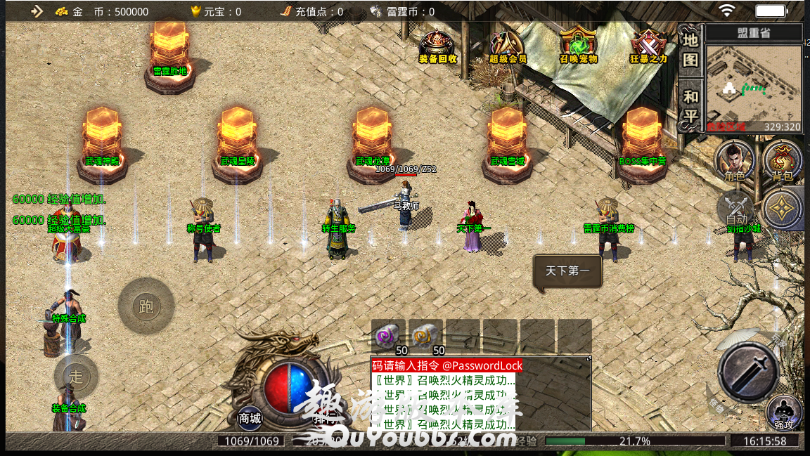 【版本介绍】15顶赞,爆率新区老区都一样,永久新区老区人气PK! 【版本介绍】新区开放第二天集体攻沙,拿沙奖励多多! 【版本介绍】全心保底BOSS系统!每个新区必爆实物,上万永久回收! 【版本介绍】游戏比例1:10500 回收比例1:11000 ! 【版本介绍】独家订制封挂系统.全网最快攻击速度(不卡刀,超流畅)。 版本截图
